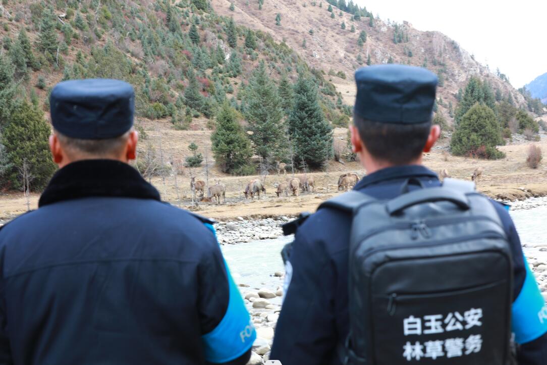 “這些年,隨著生態(tài)保護(hù)力度的加大,并在林草警務(wù)的助推下,這般偶遇已是他們守望青山路上的尋常一景,也是他們常年堅(jiān)守的動力所在。”據(jù)帶隊(duì)的安孜派出所“小高所長”高照洪介紹,白唇鹿是一種典型的高寒動物,由于數(shù)量稀少,被列入世界自然保護(hù)聯(lián)盟瀕危物種紅色名錄。察青松多自然保護(hù)區(qū),這是白唇鹿的樂園,更是我們眼里靈動的風(fēng)景線。這段時(shí)間,白唇鹿每天下午5、6點(diǎn)鐘左右都會出現(xiàn)在此。目前,隨著生態(tài)環(huán)境的越來越好,在白玉縣察青松多自然保護(hù)區(qū)內(nèi),白唇鹿種群數(shù)量高達(dá)3000只左右,不負(fù)白玉林草警務(wù)多年守護(hù)的辛苦。(楊志軍)