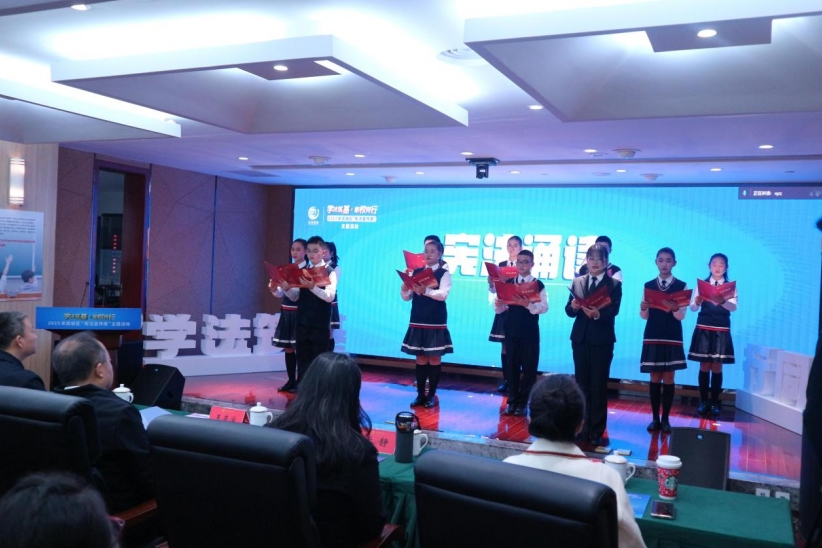 主題活動(dòng)在學(xué)生代表們憲法誦讀中拉開(kāi)序幕,以此弘揚(yáng)憲法精神,增強(qiáng)學(xué)生憲法意識(shí),為推進(jìn)全面依法治區(qū)營(yíng)造了濃厚的法治氛圍。