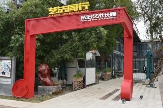 川音藝谷法治文化體驗(yàn)基地位于新都區(qū)石板灘街道韓娥社區(qū),基地以做實(shí)普法體驗(yàn)場(chǎng)景、做強(qiáng)法治藝創(chuàng)產(chǎn)業(yè)、做精藝創(chuàng)法律服務(wù)、做優(yōu)園區(qū)法治化營(yíng)商環(huán)境為抓手,積極探索“守法普法”的新模式?;亻T頭采用二八音樂(lè)符號(hào)藝術(shù)變型設(shè)計(jì),突出普法抓住“關(guān)鍵少數(shù)”。法治雕塑廣場(chǎng)采用經(jīng)典法治故事雕刻作品,展現(xiàn)民法典基本原則理念。法治長(zhǎng)廊采用法治藝術(shù)場(chǎng)景引導(dǎo)+典型案例釋法拓展+交互教育沉浸體驗(yàn)的方式展現(xiàn)熊博士的法治人生。同時(shí),使用四川獨(dú)有物種熊貓,創(chuàng)作形象的熊貓法字LOGO;借鑒新都漢朝說(shuō)唱俑,創(chuàng)作說(shuō)法熊貓吉祥物。與川音藝谷項(xiàng)目的運(yùn)營(yíng)方建立合作機(jī)制,舉辦新都區(qū)法治文化作品展覽、評(píng)選活動(dòng),鼓勵(lì)創(chuàng)作具有法治內(nèi)涵的雕塑、書(shū)法、攝影、音樂(lè)等藝術(shù)產(chǎn)品作品。此外,基地布局川音藝谷法律之家,發(fā)揮社區(qū)法律顧問(wèn)服務(wù)團(tuán)隊(duì)的作用,積極為項(xiàng)目建設(shè)提供合同合法性審查等法律服務(wù),為川音藝谷文創(chuàng)園建設(shè)保駕護(hù)航。基地還設(shè)立川音藝谷知識(shí)產(chǎn)權(quán)保護(hù)工作站,融合多部門的職能作用,營(yíng)造良好的國(guó)際營(yíng)商環(huán)境,增強(qiáng)藝創(chuàng)產(chǎn)業(yè)創(chuàng)作創(chuàng)新的活力。