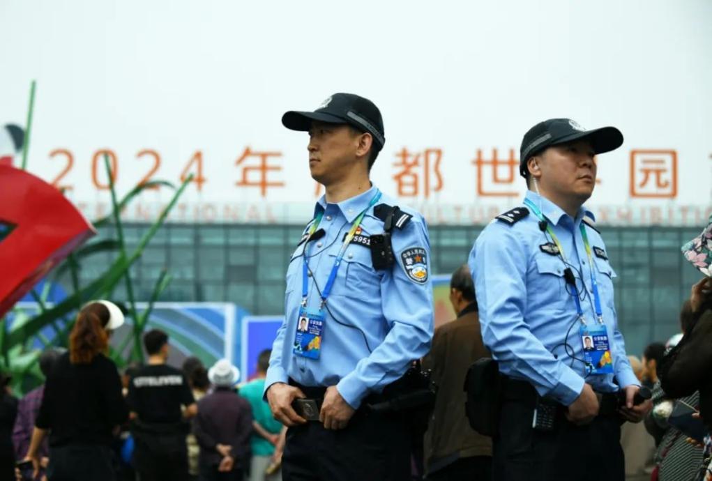 除了開幕式現(xiàn)場,成都郫都公安在各個展區(qū)也部署了相應(yīng)警力作為安保員。安保員不僅要保護好現(xiàn)場人員的人身和財產(chǎn)安全,還要做好消防應(yīng)急安全和突發(fā)事件的處置,確保進入展區(qū)的每一位游客都能乘興而來,平安而歸。