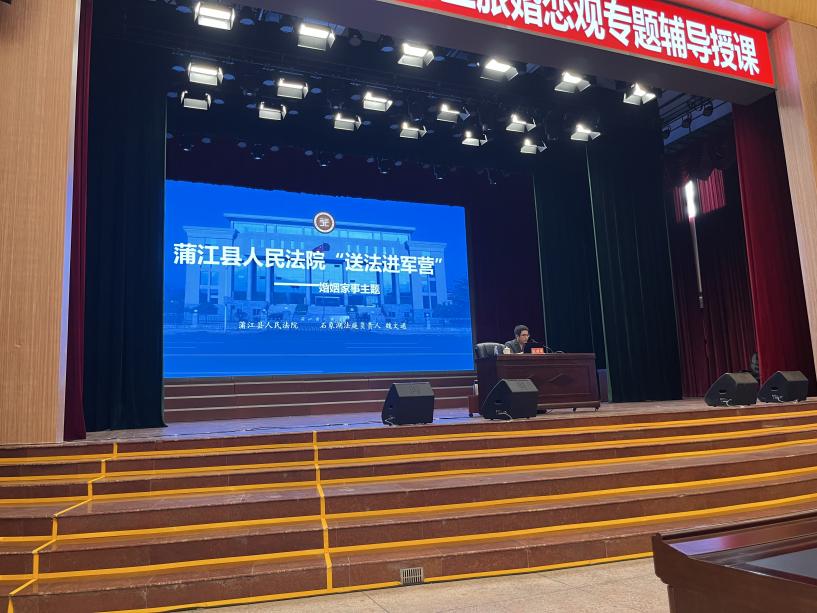 近日,四川省成都市蒲江縣人民法院石象湖法庭法官前往駐蒲某部隊(duì)開展“送法進(jìn)軍營(yíng)”活動(dòng),為200余名官兵帶來了一堂干貨滿滿的法治課。