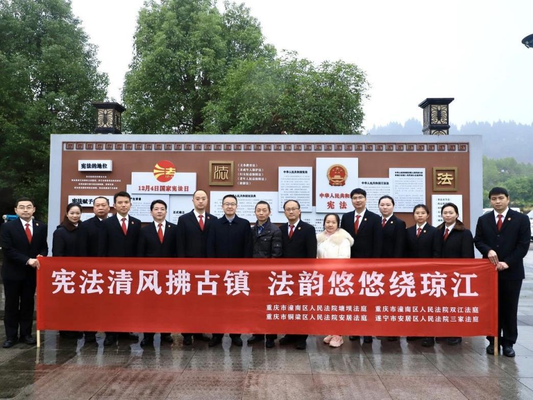 2024年12月4日,是我國第十一個“國家憲法日”;12月1日至12月7日,是第七個“憲法宣傳周”。為大力弘揚(yáng)憲法精神,彰顯憲法權(quán)威,進(jìn)一步深化川渝毗鄰地區(qū)司法協(xié)作,豐富拓展瓊江流域“紐扣法庭”工作機(jī)制的內(nèi)涵和外延,12月4日,四川省遂寧市安居區(qū)人民法院三家法庭攜手重慶市潼南區(qū)人民法院塘壩法庭、雙江法庭和重慶市銅梁區(qū)人民法院安居法庭,一同前往重慶市潼南區(qū)雙江古鎮(zhèn)開展“12·4”國家憲法日主題普法宣傳活動。川渝兩地人大代表應(yīng)邀參加此次活動。
