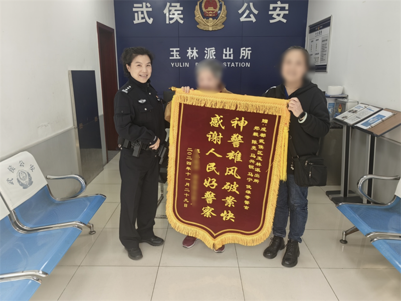 “感謝警察同志迅速把我母親的3萬元追回來,如果不是你們平時(shí)反詐宣傳做得好,我也不會第一時(shí)間報(bào)警,真的太感謝你們了!”12月1日,轄區(qū)周婆婆和女兒特意到玉林派出所為民警送來一面印有“神警雄風(fēng)破案快 感謝人民好警察”的錦旗,表達(dá)對民警為其追回被騙現(xiàn)金的感謝之情。