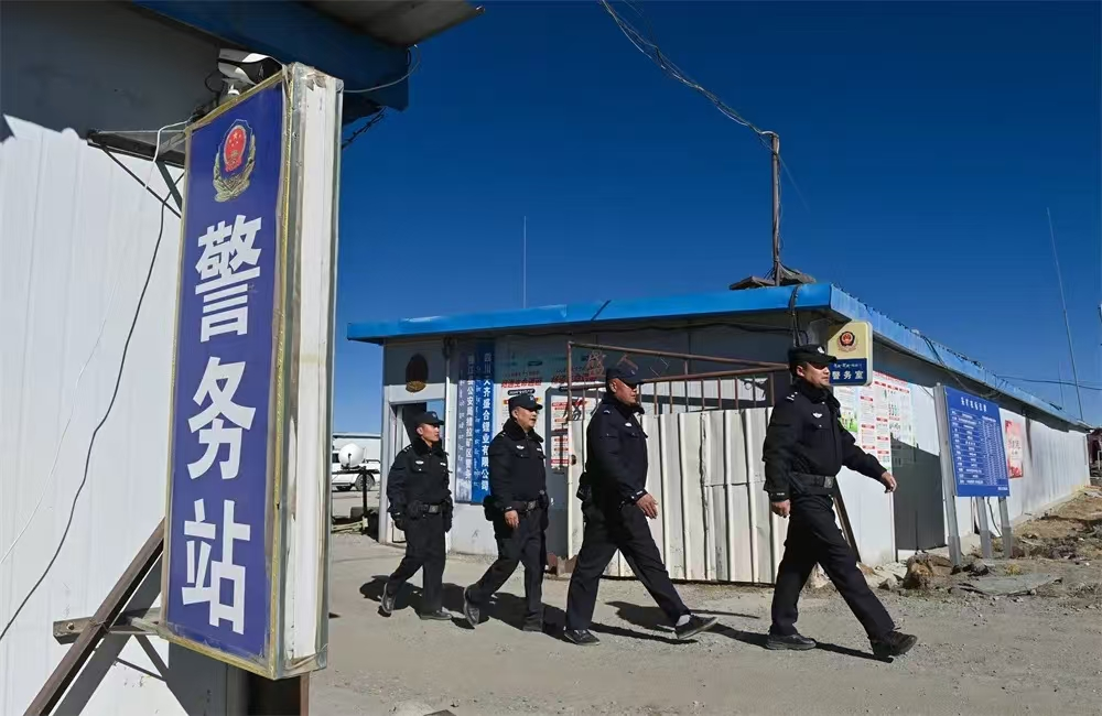 為了打造平安礦區(qū),雅江縣公安局主動(dòng)前移警務(wù),2020年,在海拔4540米的鋰礦勘探區(qū)域建成并投入運(yùn)行了瓦多派出所措拉礦山警務(wù)站,轄區(qū)覆蓋周邊的3個(gè)施工企業(yè)和1個(gè)村,常態(tài)化部署2名民警、4名輔警開展工作。警務(wù)站成立后,駐勤民輔警在礦區(qū)重點(diǎn)部位、治安形勢(shì)復(fù)雜區(qū)域、進(jìn)出山口要道等部位設(shè)立執(zhí)勤崗位。開展打擊盜竊、破壞工程設(shè)施,矛盾糾紛化解,利企便民服務(wù),法治宣傳等工作,及時(shí)處置各類警情、受理各類報(bào)警求助,擔(dān)負(fù)起了為企業(yè)開發(fā)建設(shè)護(hù)航的職責(zé)。