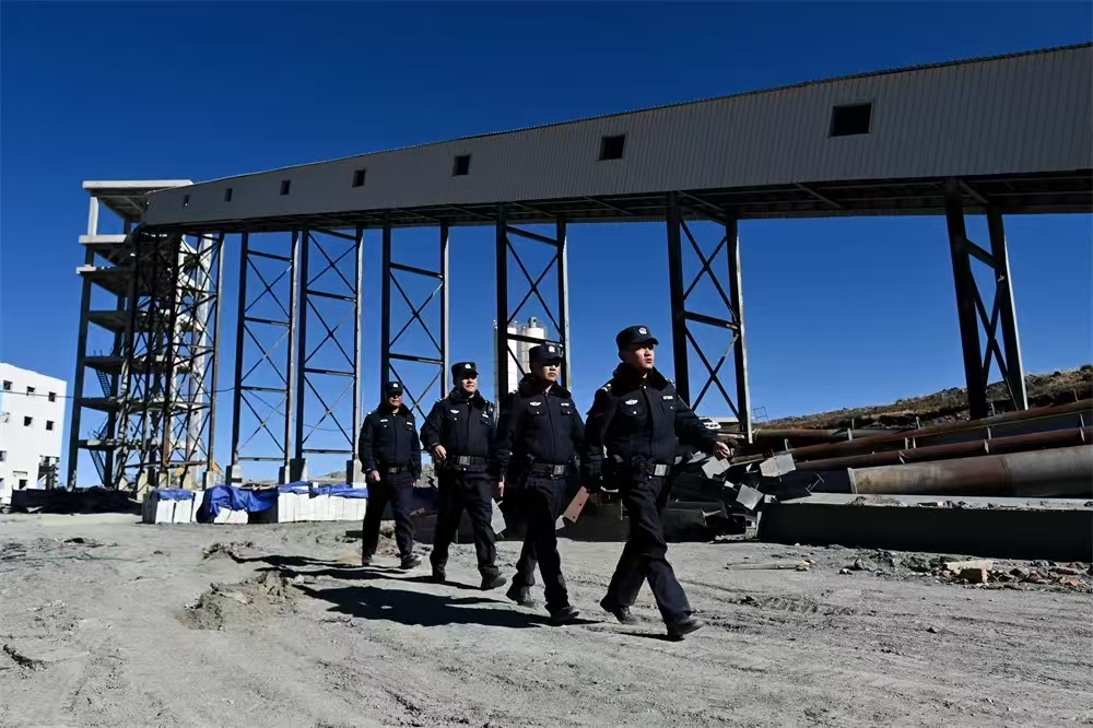 作為駐勤的第一批警力,土登郎加見證了警務(wù)站建立前后礦區(qū)的變化。在警務(wù)站建立之前,施工建設(shè)工地盜竊現(xiàn)象猖獗,建筑材料、施工工具被人順手牽羊偷走是常事。挖掘機(jī)需要使用的機(jī)油被盜竊者全部倒在地上,因?yàn)樗麄冎恍枰b油的鐵桶,導(dǎo)致挖掘機(jī)無(wú)法工作。甚至有時(shí)候,就連企業(yè)廚房里燉著的土雞都被人連鍋端走。這般偷盜行為,讓礦山企業(yè)苦不堪言。