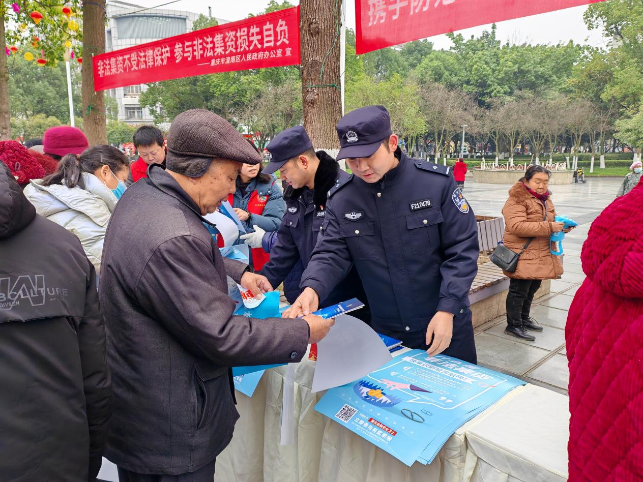近日,重慶市潼南區(qū)公安局經(jīng)偵支隊(duì)充分利用歲末年初“萬家團(tuán)聚、過年返鄉(xiāng)”的有利時(shí)機(jī),聯(lián)合區(qū)人民法院、區(qū)檢察院、駐潼金融機(jī)構(gòu)等相關(guān)單位在江北奮進(jìn)廣場(chǎng)開展以“守好錢袋子 安度新年關(guān)”為主題的防范非法集資集中宣傳活動(dòng),全力守護(hù)老百姓的“錢袋子”。