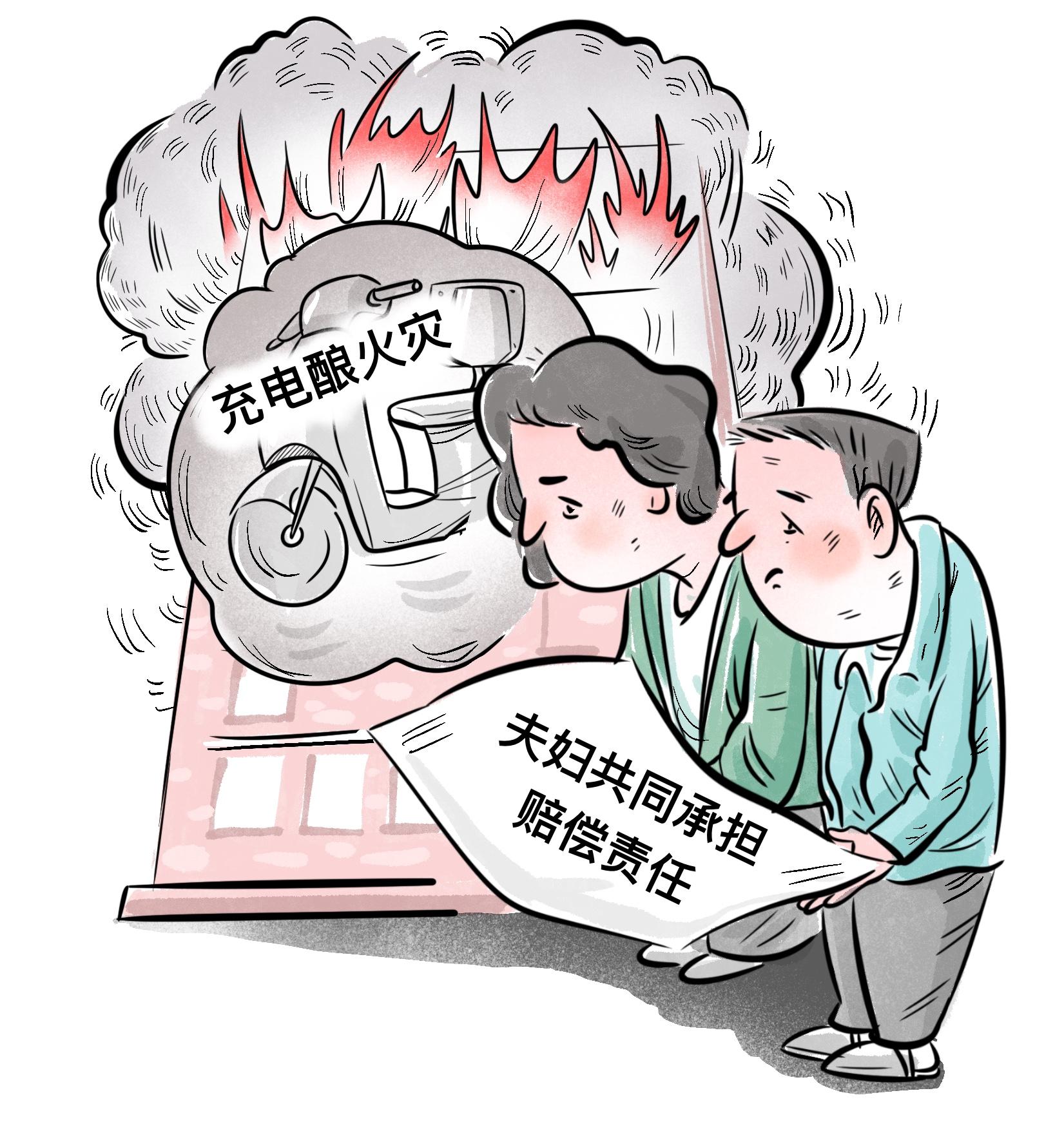 法官認(rèn)為,周女士因違規(guī)將電瓶車推回家中充電而引發(fā)火災(zāi),致使同樓層的桂女士因吸入濃煙不幸身亡,在本次事故中存在嚴(yán)重過錯(cuò),因此應(yīng)對(duì)桂女士的死亡后果承擔(dān)主要賠償責(zé)任。鑒于楊先生與周女士系夫妻關(guān)系,且涉案電瓶車系二人婚姻關(guān)系存續(xù)期間購買并用于家庭,楊先生雖未直接參與充電行為,但其未能及時(shí)發(fā)現(xiàn)并排除車輛安全隱患,也未在周女士違規(guī)充電時(shí)予以制止,未盡到充分的注意義務(wù),因此楊先生與周女士構(gòu)成共同侵權(quán),應(yīng)當(dāng)承擔(dān)相應(yīng)的賠償責(zé)任。
