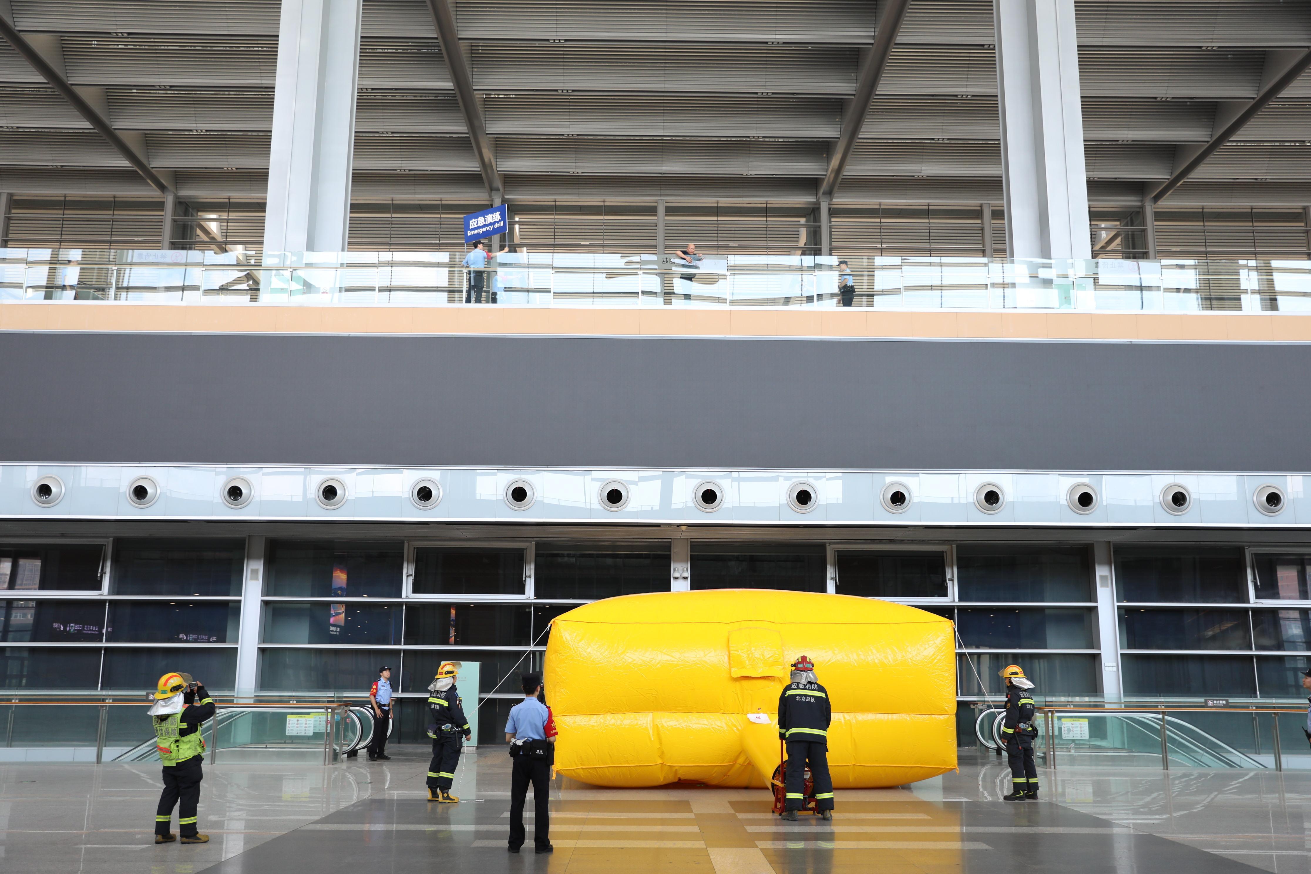 圖為北京鐵警聯合消防部門和豐臺客運站開展應急拉動演練。