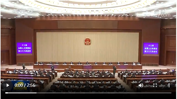 新華社北京12月27日電?十三屆全國人大常委會第三十八次會議27日上午在北京人民大會堂舉行第一次全體會議。栗戰(zhàn)書委員長主持。