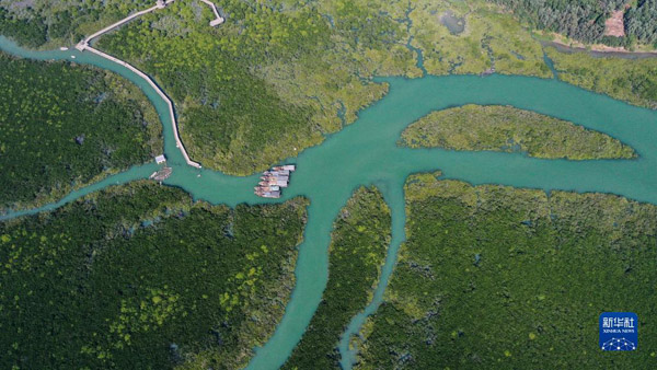 2022年10月22日拍攝的廣西山口紅樹林生態(tài)國(guó)家級(jí)自然保護(hù)區(qū)景色(無(wú)人機(jī)照片)。該自然保護(hù)區(qū)地處廣西合浦縣,是我國(guó)首批海洋類型的國(guó)家級(jí)自然保護(hù)區(qū)之一。新華社記者?張愛林?攝