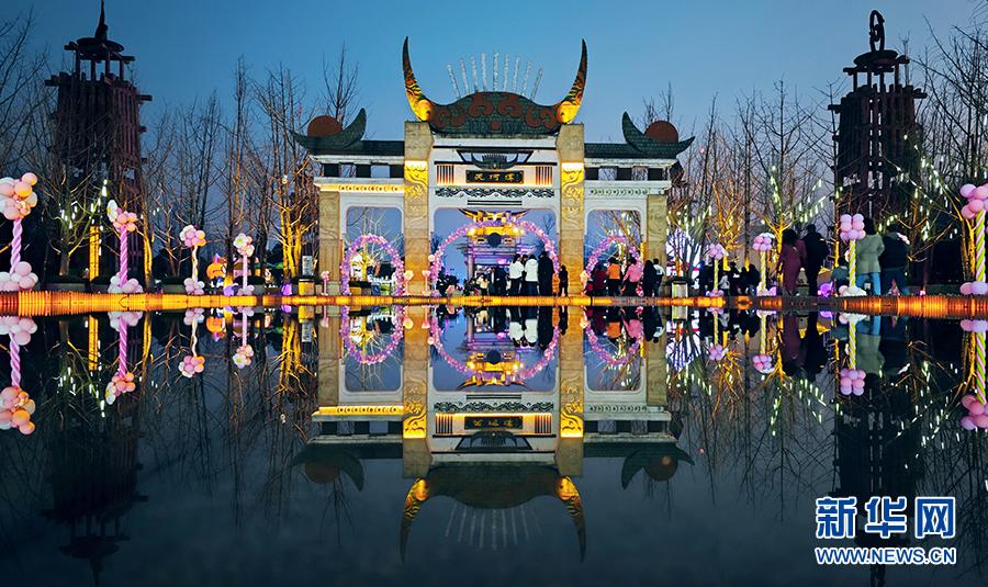 1月31日晚,游客紛紛進入天河潭旅游度假區(qū)。新華網(wǎng) 盧志佳 攝