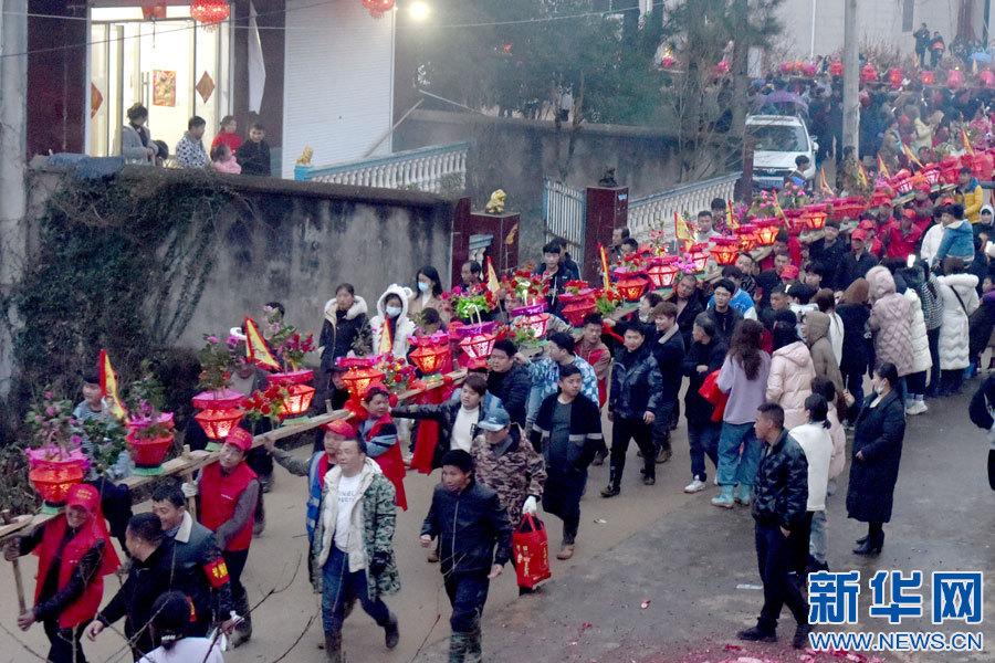 2月4日,在江西景德鎮(zhèn)市樂(lè)平市禮林鎮(zhèn)洄田村,當(dāng)?shù)財(cái)?shù)千名群眾舞動(dòng)千米“巨龍”板橋龍燈,吸引數(shù)萬(wàn)名市民和游人前來(lái)同賞龍燈,共慶元宵佳節(jié)。(譚茜予)