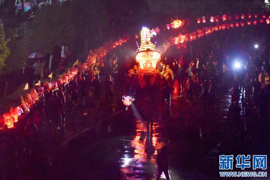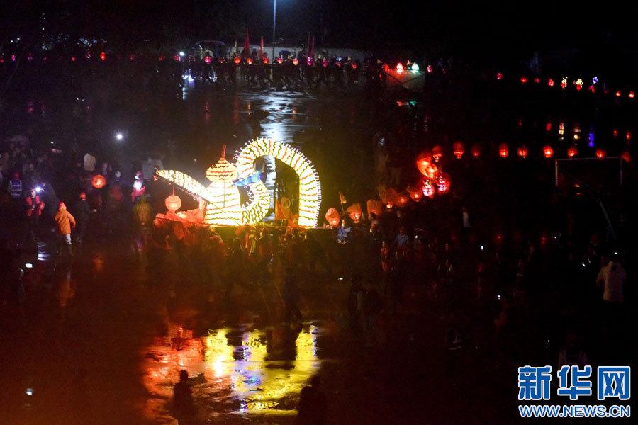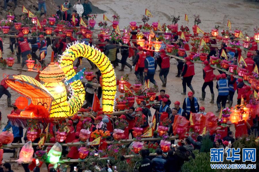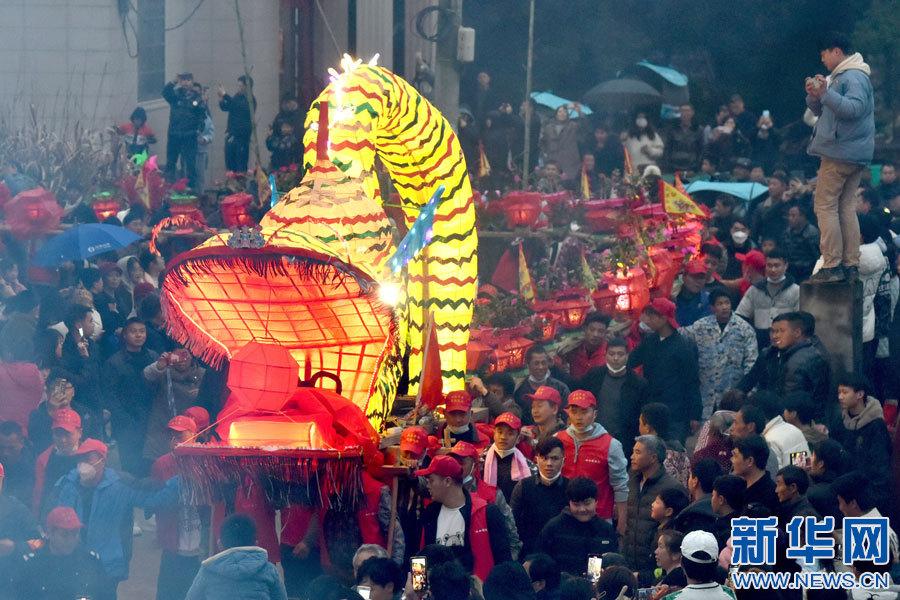景德鎮(zhèn)市樂(lè)平市禮林鎮(zhèn)洄田村板橋龍燈表演。(新華網(wǎng)發(fā) 朱定文 攝)