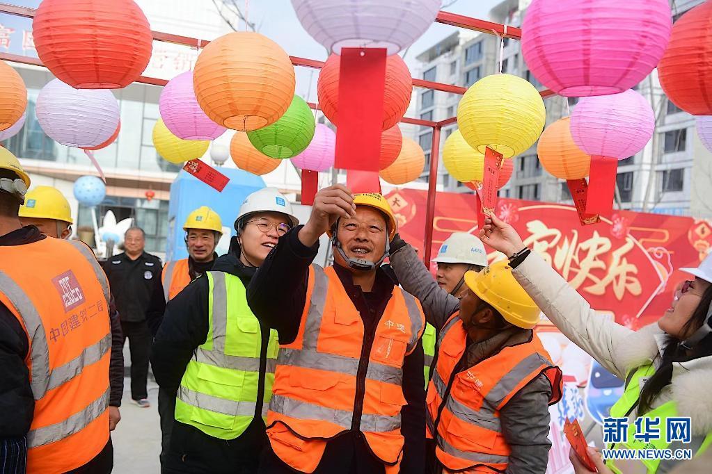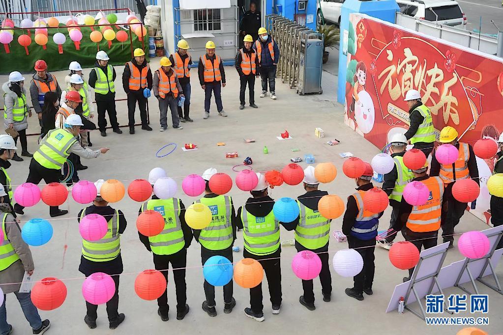 元宵節(jié)來臨之際,江蘇省南京市的建筑工地節(jié)日氣氛濃厚。建設(shè)者們猜燈謎、做花燈,以多種形式慶祝元宵節(jié)的到來。