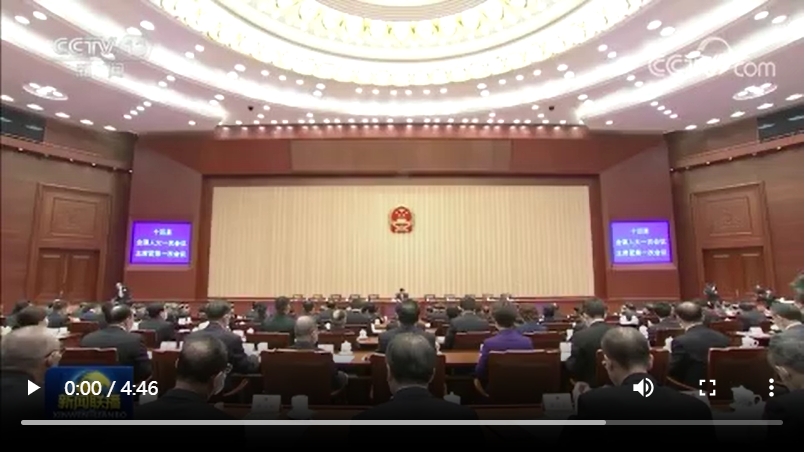 根據(jù)全國(guó)人大議事規(guī)則,會(huì)議首先在十三屆全國(guó)人大常委會(huì)委員長(zhǎng)栗戰(zhàn)書(shū)的主持下,推選大會(huì)主席團(tuán)常務(wù)主席。