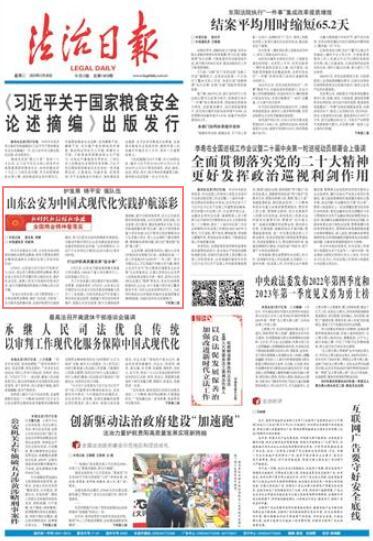 “全省公安機關深入學習貫徹黨的二十大和全國兩會精神,錨定‘走在前、開新局’,全力服務高質(zhì)量發(fā)展、全面護航現(xiàn)代化強省建設,努力以新安全格局保障新發(fā)展格局,為推動中國式現(xiàn)代化山東實踐創(chuàng)造更加安全穩(wěn)定的政治社會環(huán)境?!鄙綎|省副省長、公安廳廳長李偉近日接受《法治日報》記者采訪時說。