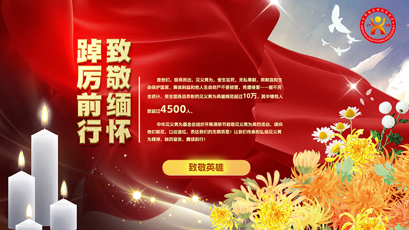 英雄們的行為和崇高精神為全社會(huì)作出了表率,樹(shù)立了榜樣,我們將一直銘記在心。此次清明節(jié)活動(dòng),請(qǐng)大家積極參與,向見(jiàn)義勇為獻(xiàn)出寶貴生命的英烈和犧牲人員網(wǎng)絡(luò)獻(xiàn)花,以此追憶,表達(dá)我們的無(wú)限哀思。讓我們踔厲奮發(fā)、賡續(xù)前行,以實(shí)際行動(dòng)傳承和弘揚(yáng)見(jiàn)義勇為精神,倡導(dǎo)見(jiàn)義勇為的社會(huì)風(fēng)尚,讓全社會(huì)正氣充盈、邪不可干,為建設(shè)更高水平平安中國(guó)、法治中國(guó)而奮斗。