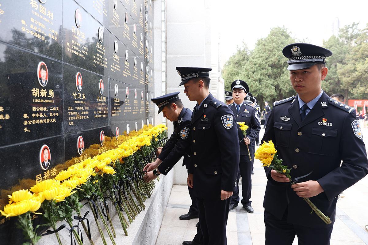 3月31日,河南省公安廳機(jī)關(guān)青年民警代表120余人來到鄭州烈士陵園河南公安英烈紀(jì)念廣場(chǎng)開展清明祭英烈活動(dòng)。全省公安民警牢記宗旨使命,忠誠(chéng)履職盡責(zé),勇于擔(dān)當(dāng)作為,甘于犧牲奉獻(xiàn),僅2022年以來,全省公安機(jī)關(guān)就有30名民警為公安事業(yè)獻(xiàn)出了寶貴的生命。圖為民警敬獻(xiàn)鮮花。