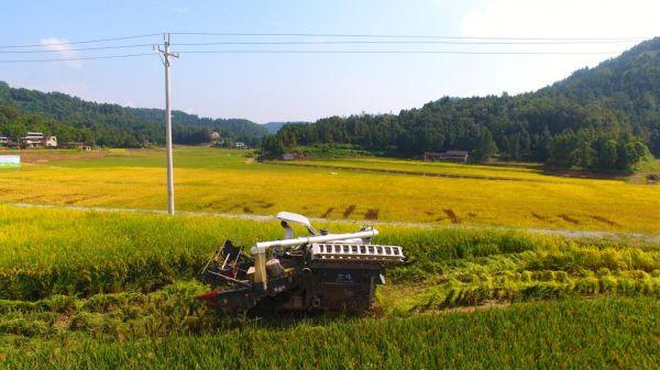 農(nóng)機(jī)收割水稻(恩陽區(qū)委組織部供圖)