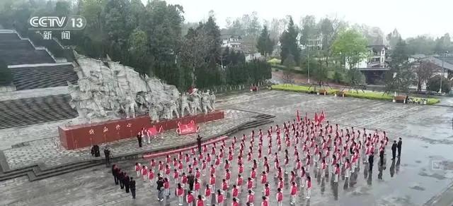 在川陜革命根據(jù)地紅軍烈士陵園,少先隊(duì)員們?yōu)闊o名烈士敬獻(xiàn)紅領(lǐng)巾,并用為無名墓碑上的紅星描紅補(bǔ)色的方式,寄托對革命先烈的哀思。