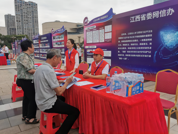 為加強網(wǎng)絡(luò)法治宣傳,推動網(wǎng)絡(luò)普法工作開新局,6月13日,以“e法治網(wǎng) 同心同行”為主題的2023年“全國網(wǎng)絡(luò)普法行·江西站”活動啟動儀式在南昌舉行。與此同時,網(wǎng)絡(luò)法治宣傳展覽也在南昌市八一廣場拉開帷幕。江西省委網(wǎng)信辦、省高級人民法院、省人民檢察院、省公安廳、省司法廳等單位參加活動,并現(xiàn)場進行法治宣傳和法律咨詢服務(wù)。