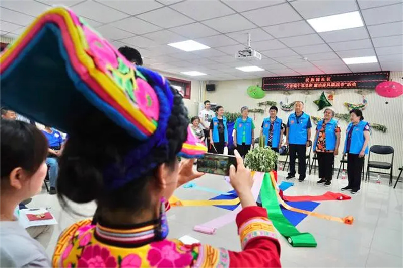 社區(qū)通過(guò)傳統(tǒng)端午祈福儀式、樓門(mén)掛艾草、制作端午避瘟藥包等形式,讓居民進(jìn)一步了解和感受中華傳統(tǒng)節(jié)日文化。