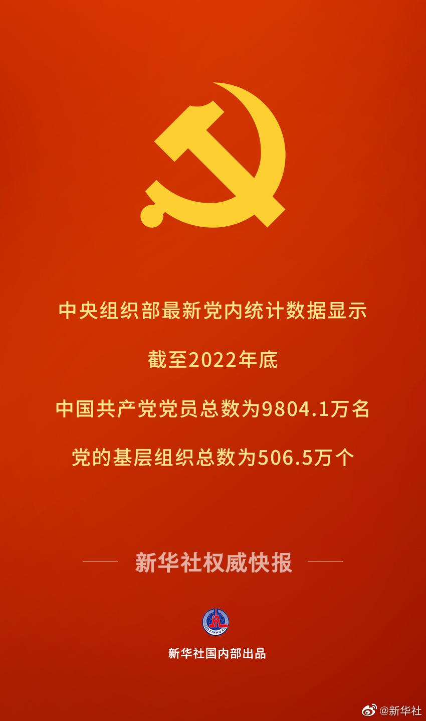中央組織部最新黨內(nèi)統(tǒng)計(jì)數(shù)據(jù)顯示,截至2022年底,中國共產(chǎn)黨黨員總數(shù)為9804.1萬名,比上年凈增132.9萬名,黨的基層組織506.5萬個(gè),比上年凈增12.9萬個(gè)。
