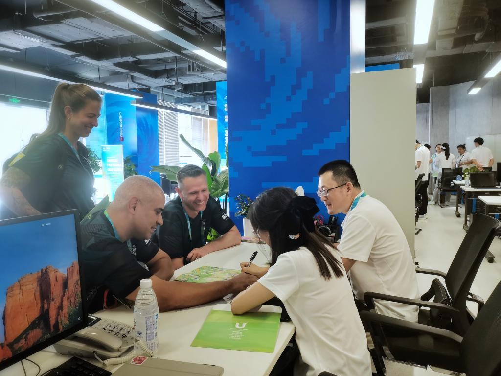 國(guó)外大學(xué)生代表團(tuán)成員在成都大運(yùn)村咨詢(xún)城市文化體驗(yàn)觀光線(xiàn)路活動(dòng)。受訪者供圖