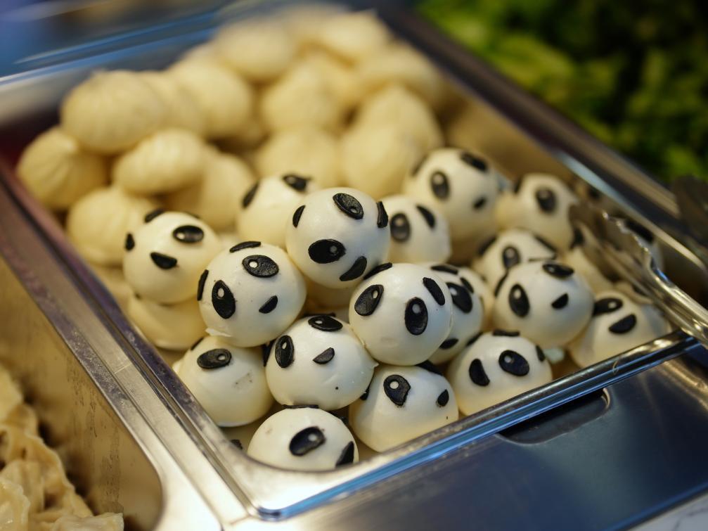 “蓉寶”雕塑對(duì)街的大運(yùn)村運(yùn)動(dòng)員餐廳,具有中華美食、歐陸風(fēng)味、亞洲風(fēng)味等多個(gè)門(mén)類(lèi),而在中華美食的主食分區(qū),日常供應(yīng)的熊貓?jiān)煨投拱c黑芝麻湯圓,常常成為遠(yuǎn)方來(lái)客們探索中華美食的第一步。