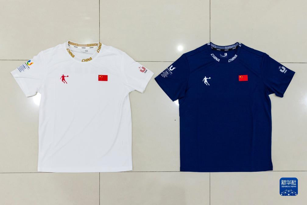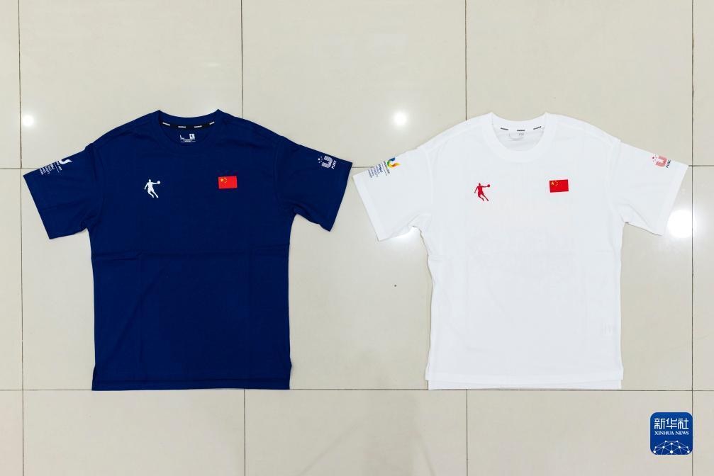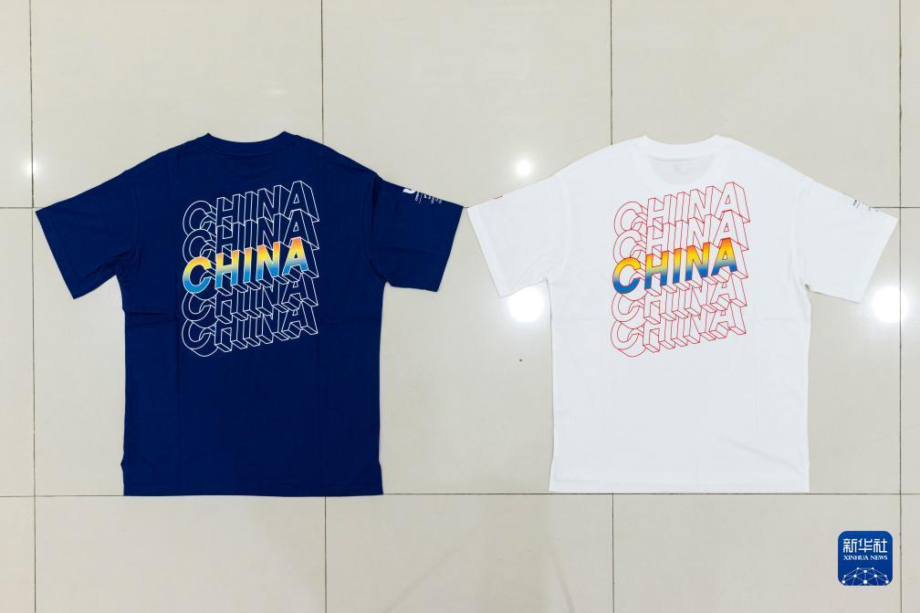 這是7月24日拍攝的第31屆世界大學(xué)生夏季運(yùn)動(dòng)會(huì)中國代表團(tuán)成員配發(fā)裝備中的短T恤衫。新華社記者 沈伯韓 攝