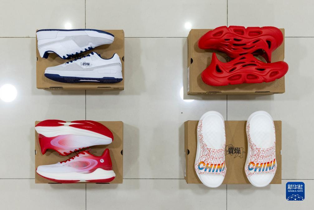 這是7月24日拍攝的第31屆世界大學(xué)生夏季運(yùn)動(dòng)會(huì)中國代表團(tuán)成員配發(fā)裝備中的不同功能的鞋。新華社記者 沈伯韓 攝