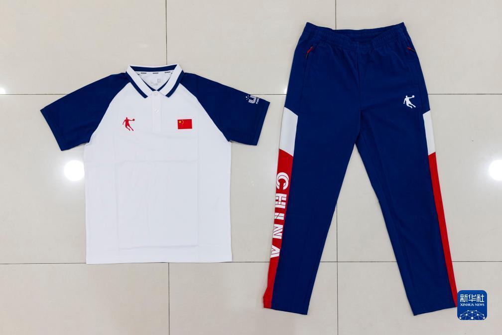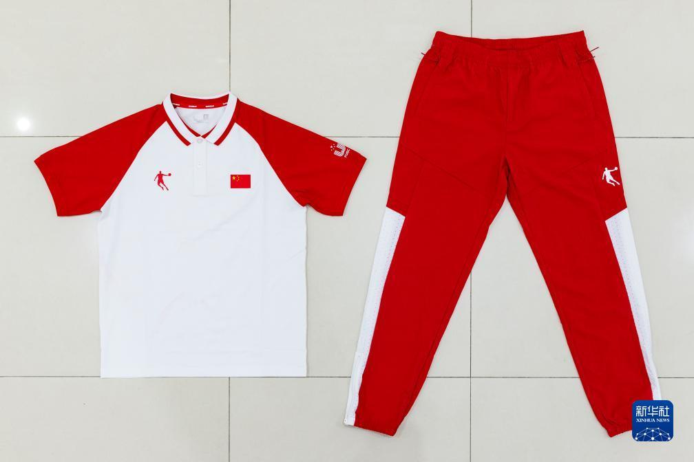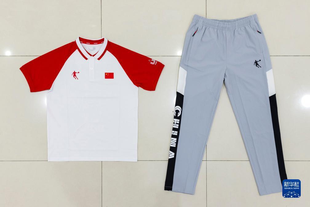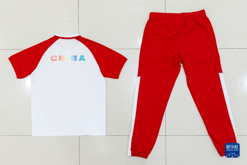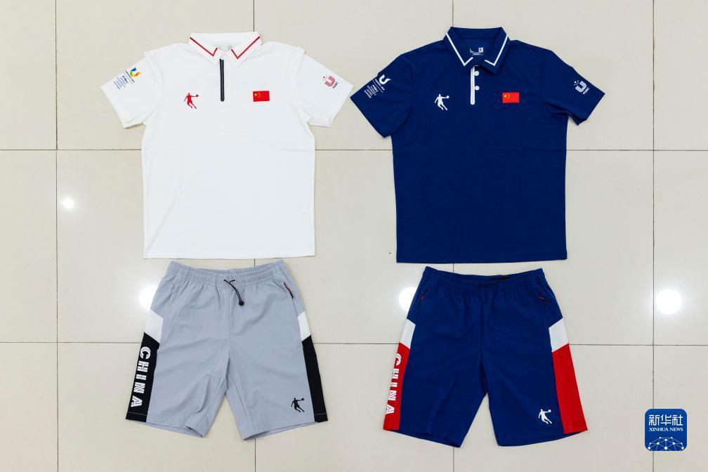 這是7月24日拍攝的第31屆世界大學(xué)生夏季運(yùn)動(dòng)會(huì)中國代表團(tuán)成員配發(fā)裝備中的POLO短T恤衫和長褲。新華社記者 沈伯韓 攝