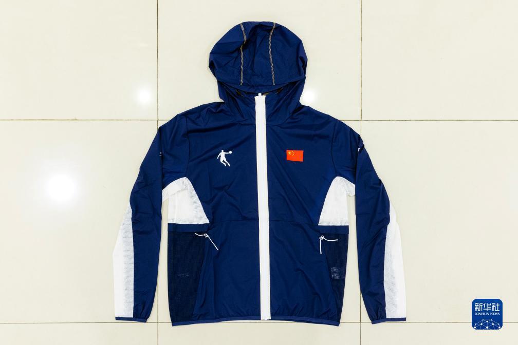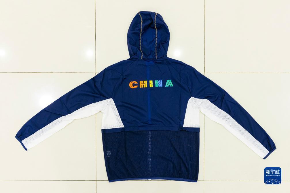 這是7月24日拍攝的第31屆世界大學(xué)生夏季運(yùn)動(dòng)會(huì)中國代表團(tuán)成員配發(fā)裝備中的梭織單層夾克。新華社記者 沈伯韓 攝