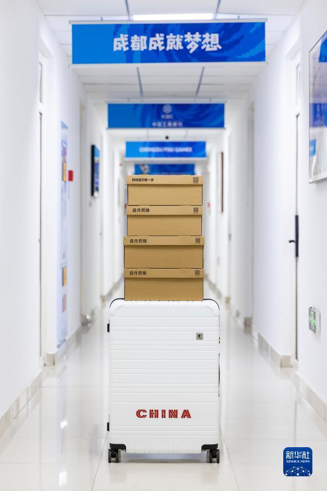 這是7月24日在第31屆世界大學(xué)生夏季運(yùn)動(dòng)會(huì)大運(yùn)村中國代表團(tuán)駐地拍攝的代表團(tuán)成員配發(fā)裝備。新華社記者 沈伯韓 攝