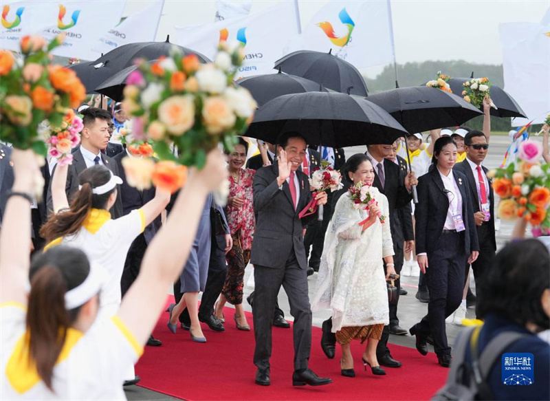 7月27日下午,來華出席成都大運(yùn)會(huì)開幕式并訪問的印度尼西亞總統(tǒng)佐科抵達(dá)四川省成都市。這是歡迎儀式現(xiàn)場(chǎng)。