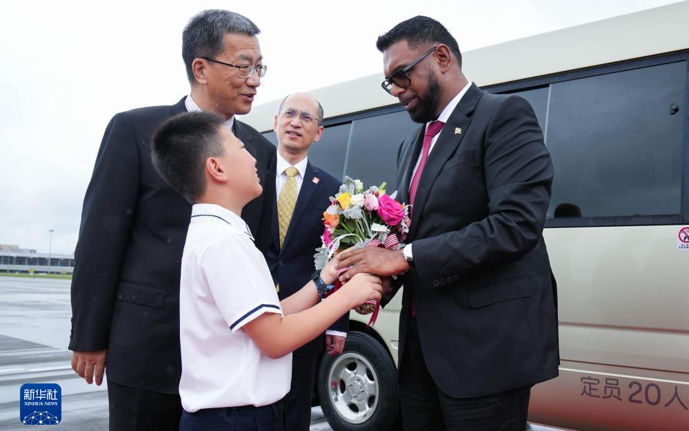 7月27日下午,來華出席成都大運(yùn)會開幕式并訪問的圭亞那總統(tǒng)阿里抵達(dá)四川省成都市。