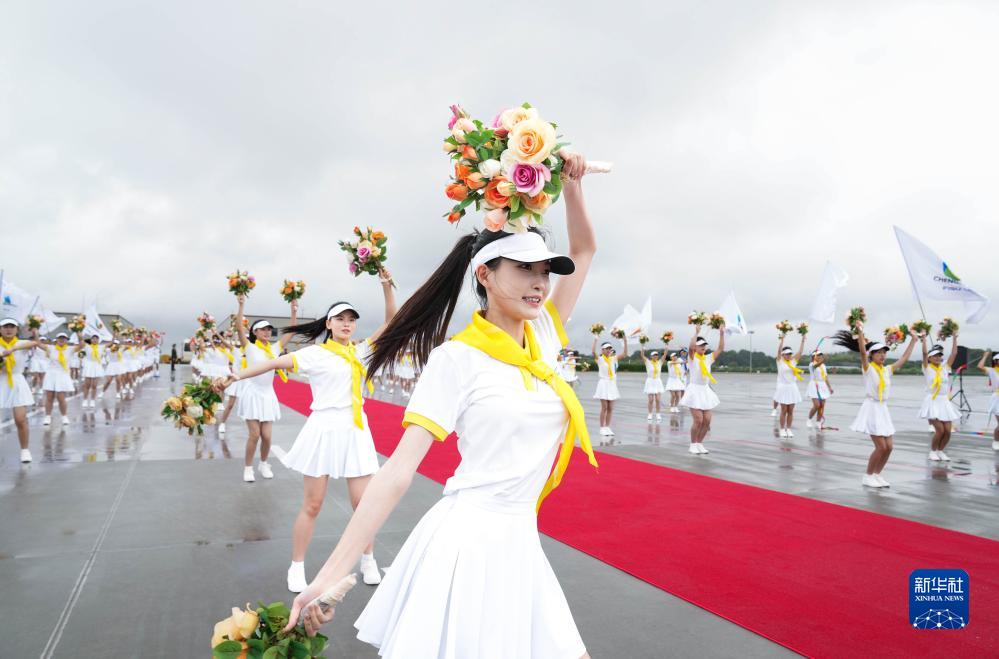 7月27日下午,來華出席成都大運(yùn)會(huì)開幕式并訪問的圭亞那總統(tǒng)阿里抵達(dá)四川省成都市。這是歡迎儀式現(xiàn)場(chǎng)。