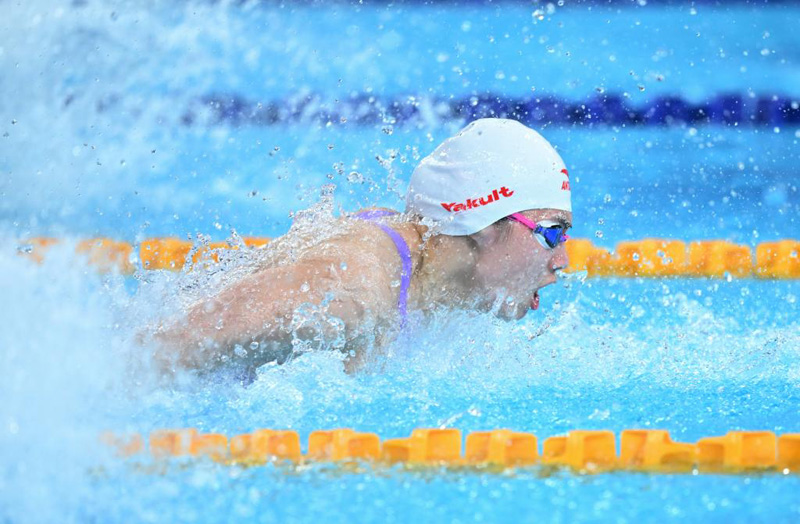 8月2日,張雨霏在決賽中。當(dāng)日,在成都舉行的第31屆世界大學(xué)生夏季運(yùn)動(dòng)會(huì)女子50米蝶泳決賽中,中國(guó)選手張雨霏以25秒20的成績(jī)獲得冠軍。新華社記者 陳澤國(guó) 攝