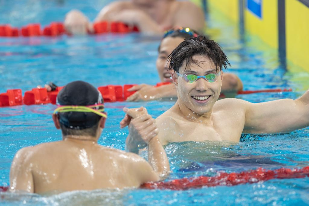 在男子200米蛙泳決賽中,覃海洋身著長款白色羽絨服霸氣登場,再次點(diǎn)燃觀眾熱情。他也不負(fù)眾望,全程穩(wěn)居第一,以2分08秒09的成績刷新賽會紀(jì)錄,為中國隊再添一金。
