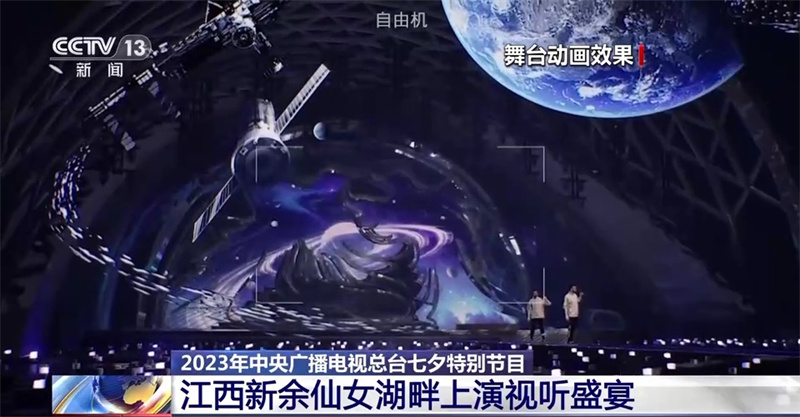 今年的七夕特別節(jié)目融入了傳統(tǒng)戲曲、民樂、非遺技藝等優(yōu)秀傳統(tǒng)文化元素,在歌曲《銀河逃離計劃》中,利用AR拍攝“太空旅行”,為觀眾構(gòu)建關(guān)于太空的可視化想象;在現(xiàn)場歌手與云端合唱《甜蜜蜜》中,借七夕節(jié)展現(xiàn)“一帶一路”中國同沿線國家建立浪漫深厚聯(lián)結(jié)的十周年。