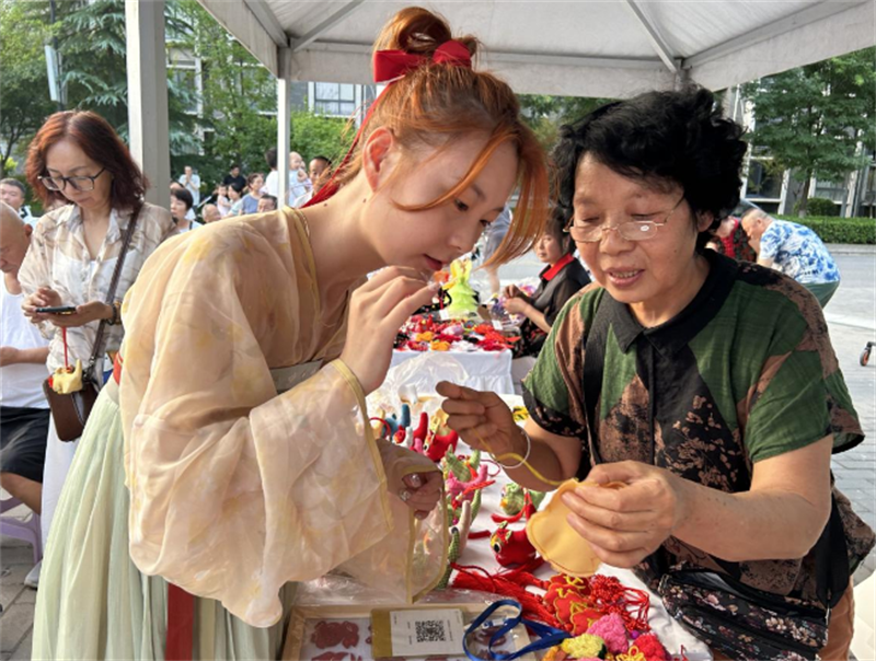 在民俗文化體驗(yàn)區(qū),幾位身著華彩漢服的年輕人在非遺傳承老師的指導(dǎo)下,凝神屏氣,手執(zhí)五色絲線,連續(xù)穿針引線……“穿針乞巧”活動(dòng)吸引了眾多市民駐足觀看?!斑@個(gè)活動(dòng)特別有意思,讓我們這些‘00’后能親手體驗(yàn)這些非常陌生的傳統(tǒng)手藝,了解感受中華傳統(tǒng)文化的深厚底蘊(yùn)。”市民陳女士拿著自己動(dòng)手制作的扎花說(shuō)。另一邊,一道“古詩(shī)詞鵲橋”吸引了眾多市民打卡留影,帶領(lǐng)大家了解“七夕節(jié)”的起源、習(xí)俗,重溫牛郎織女的美麗愛(ài)情故事,認(rèn)知傳統(tǒng)文化風(fēng)韻……一系列特色民俗文化活動(dòng),讓市民們乘興而歸。