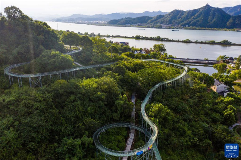 8月19日,游客在三都漁村體驗(yàn)星空水滑道特色項(xiàng)目(無人機(jī)照片)。