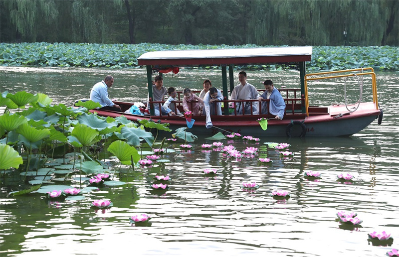 8月20日,游客放荷燈寄托對(duì)美好生活的祝愿。中國(guó)日?qǐng)?bào)記者 鄒紅 攝
