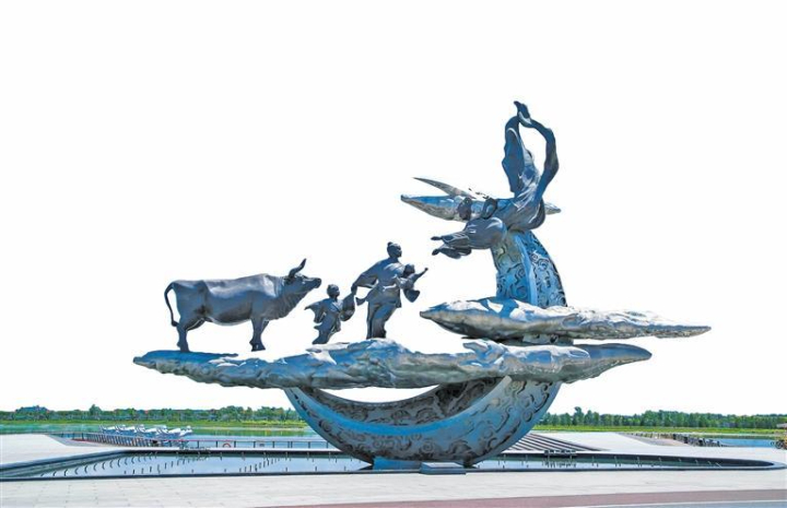 昆明池·七夕公園內的藝術裝置鵲橋仙。 西安昆明池景區(qū)供圖