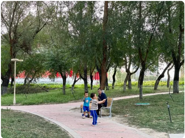 8月30日傍晚時(shí)分,記者來(lái)到新疆哈密市哈密河國(guó)家濕地公園。在其中的人民公園,樹(shù)木成蔭,水聲潺潺,涼爽宜人,不少市民正在鍛煉、休閑。