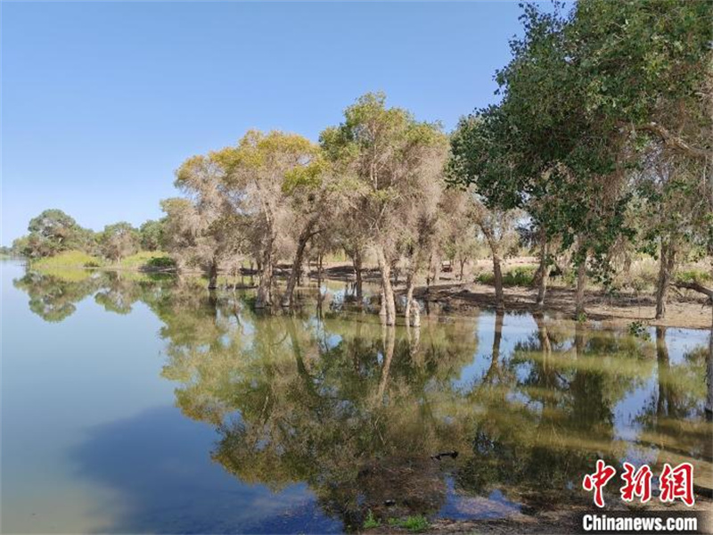 新疆尉犁縣羅布淖爾國家濕地公園,綠化覆蓋率高、植物種類較多、具有較好的水生態(tài)及觀賞價(jià)值。(中新網(wǎng)記者 王小軍 攝)