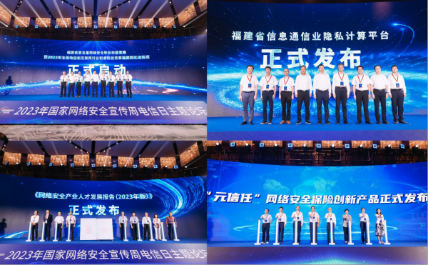 主題論壇中,9位行業(yè)專家、學(xué)者和企業(yè)代表緊扣新型工業(yè)化領(lǐng)域熱點話題,深入討論發(fā)展形勢、前沿技術(shù),分享實踐經(jīng)驗。當日,三項最新行業(yè)發(fā)展成果也在主題論壇發(fā)布:福建省信息通信業(yè)隱私計算平臺、《網(wǎng)絡(luò)安全產(chǎn)業(yè)人才發(fā)展報告(2023年版)》、“元信任”網(wǎng)絡(luò)安全保險創(chuàng)新產(chǎn)品,多角度展示了信息通信業(yè)護航新型工業(yè)化、數(shù)字中國建設(shè)的最新成果。