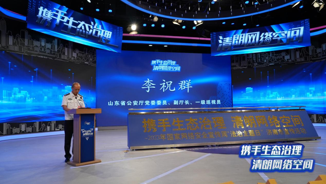 活動(dòng)中,山東省公安廳黨委委員、副廳長 、一級(jí)巡視員李祝群致辭表示,近年來,全省各級(jí)公安機(jī)關(guān)以總體國家安全觀為統(tǒng)領(lǐng),以服務(wù)經(jīng)濟(jì)社會(huì)發(fā)展為目標(biāo),積極應(yīng)對新形勢下網(wǎng)絡(luò)安全風(fēng)險(xiǎn)和挑戰(zhàn),為網(wǎng)絡(luò)強(qiáng)省建設(shè)提供了堅(jiān)實(shí)保障,希望通過法治日主題宣傳活動(dòng),能夠有更多的單位、企業(yè)、媒體和市民加入到網(wǎng)絡(luò)安全的宣傳隊(duì)伍中來,共同營造安全和諧穩(wěn)定的網(wǎng)絡(luò)環(huán)境。