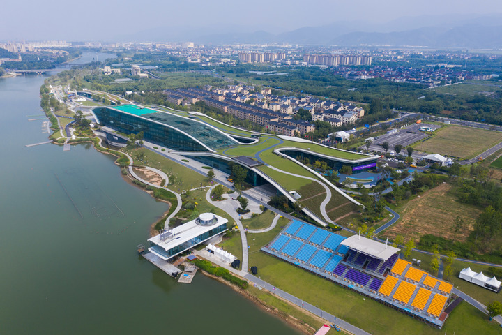8月24日,空中俯瞰杭州富陽水上運(yùn)動(dòng)中心(無人機(jī)照片)。新華社記者 徐昱 攝