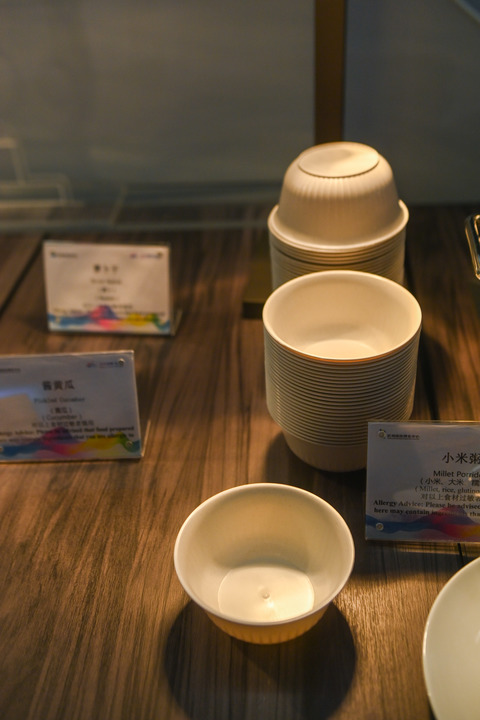 這是主媒體中心媒體記者餐廳內(nèi)使用的可降解環(huán)保餐具(9月1日攝)。新華社記者 徐昱 攝